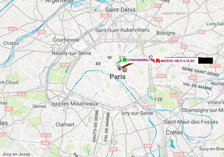 A : Strasbourg-Saint-Denis | B : Mairie des Lilas