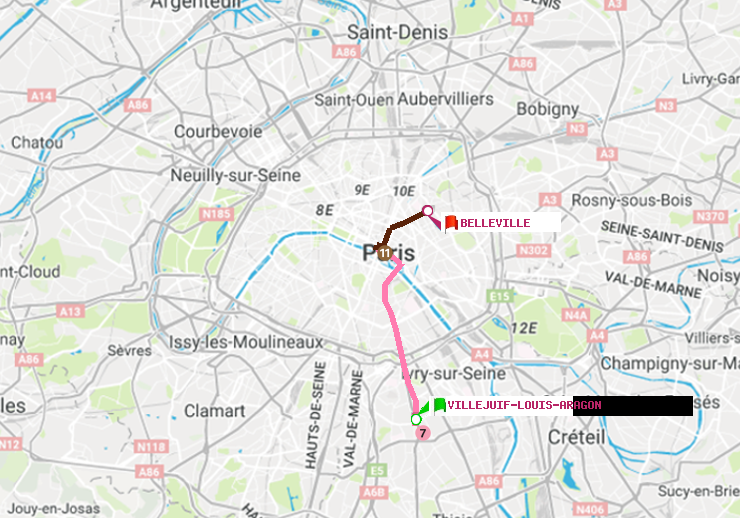 Feuille de route en métro (Villejuif-Louis Aragon -> Belleville)