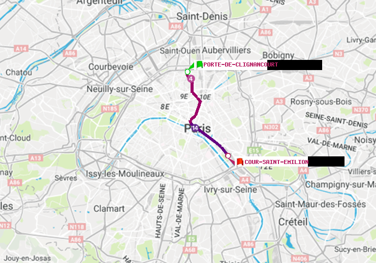 Feuille de route en métro (Porte de Clignancourt -> Cour Saint-Emilion)